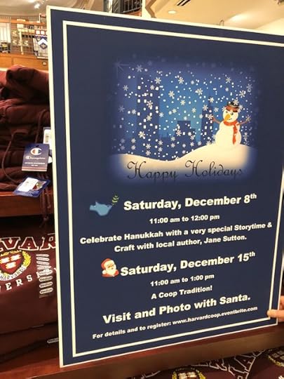 Following up on the 2 Hanukkah events mentioned in my last post … Both were fun. Special thanks to my daughter, Becky, and to Kim at the Harvard COOP and Alex at Brookline Booksmith. Both stores have wonderful children’s departments, active with events!