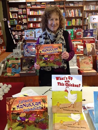 Last but certainly not least of my winter 2016 appearances and other “authory” activities was a Hanukkah Story Time featuring yours truly, Esther’s Hanukkah Disaster, and my big bag of props for question and answer games based on the story. It’s always fun to see how different children respond, often in unexpected ways! This story time was at An Unlikely Story, the vibrant and attractive bookstore in Plainville, MA created by the one and only Jeff Kinney.