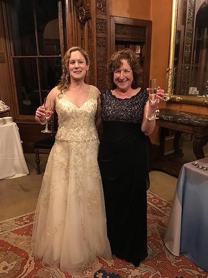 …to focus on the breaking news that our wonderful daughter, Becky, married wonderful Dan this past weekend! The ceremony – held in a very cool, gorgeous old mansion – was moving and entertaining, and the festive party afterwards had the crowd dancing for hours! Amazingly, though we’d been concerned about snowstorms and cold spells at the end of February in New England, the temperature was in the 60s!