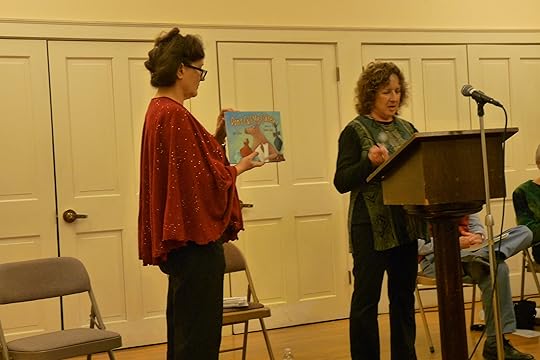 My friend Molly not only kept me company on the drive but held the pictures up so I could concentrate on reading with expression (see photo). We had a ball, and afterwards, bought books and lunch in the café!