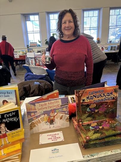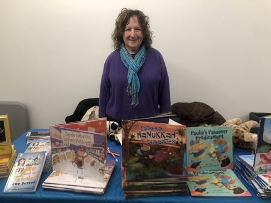 Next day was the Dreidel Disco Party at the Greater Boston JCC, a festive event with all kinds of activities, including authors selling and reading our books:
