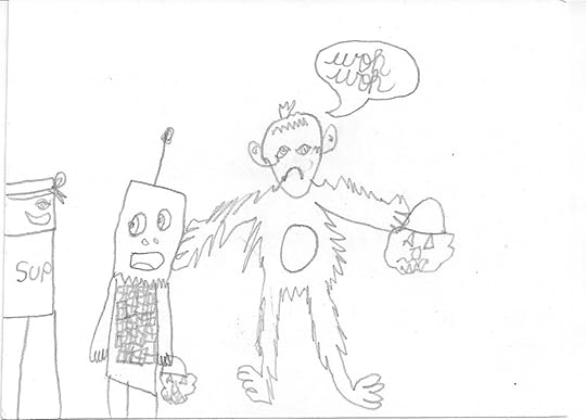 In their letters the children asked if I would please write a sequel and told me what parts were their favorites. Here are two of my favorites of their pictures. Captions (by me) explain what’s happening in these scenes.