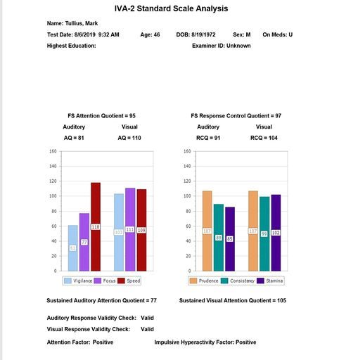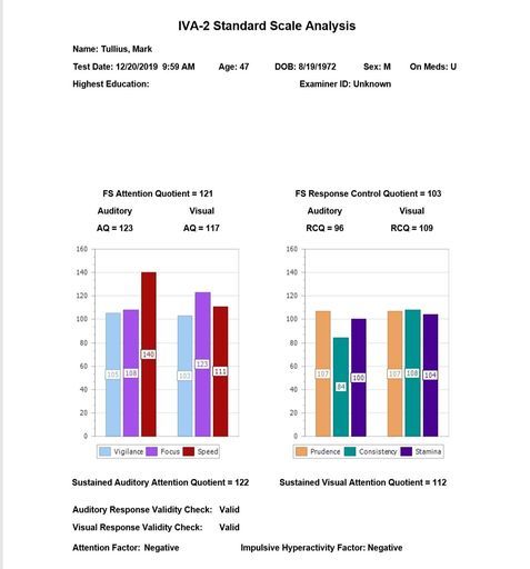 After twenty sessions, I retook the IVA test and remapped my brain. My results were encouraging, no longer triggering for ADHD and revealing noticeable improvement in many areas.