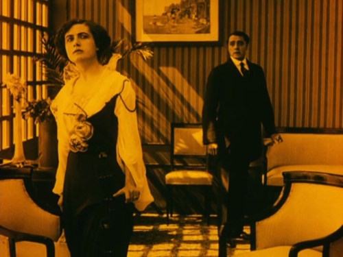 Sangue bleu (1914), dir. Nino Oxilia Caging, of uniform vertical lines of beams and wallpaper, and of bars of light, reflected through windowpanes.