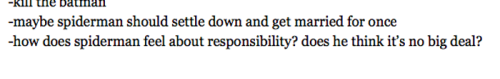 This is name of the ongoing document that I have in case I get to write Spidey again, and its entire contents