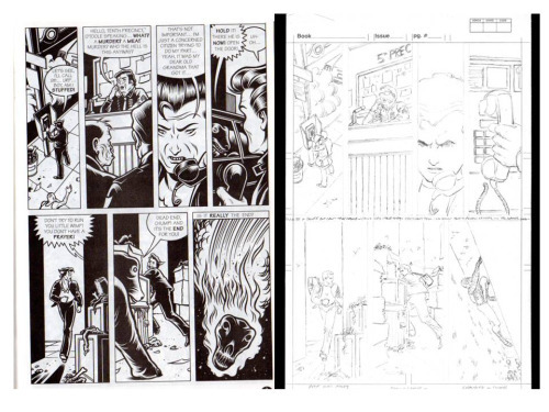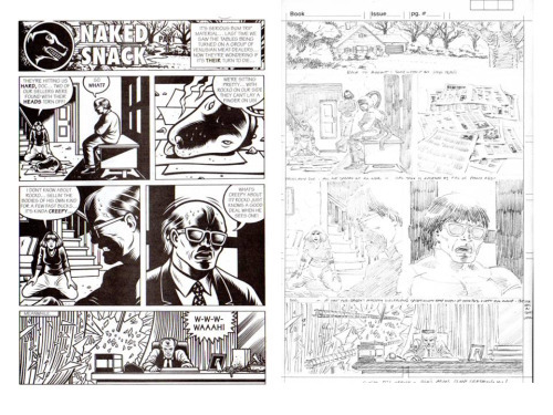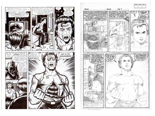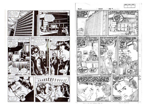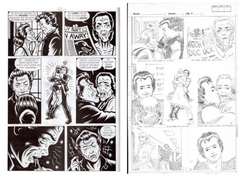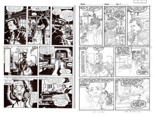 Charles Burns’ reworking of the John Romita Jr. Spider-Man story from the old Marvel Try-Out Book. I’ve arranged them side-by-side for comparison.