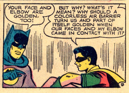 Why should a colorless air barrier turn us and part of itself golden when our faces and my elbow came in contact with it?