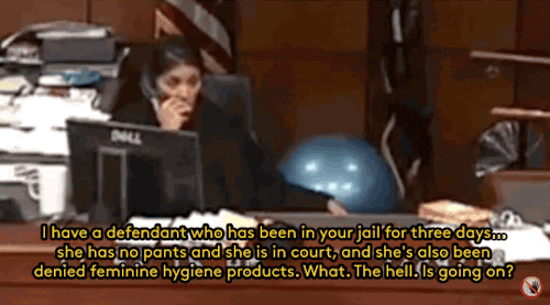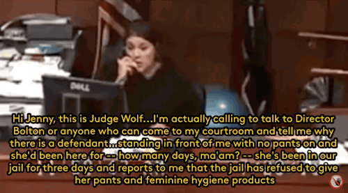 This judge had exactly the right reaction to the shameful way nonviolent prisoners are treated in US jailsA woman was denied pants or tampons after being arrested for not completing a diversion course that was part of her sentencing from a shoplifting charge. But see how the judge reacts when she finds out that the prisoner’s humiliating treatment is apparently routine.