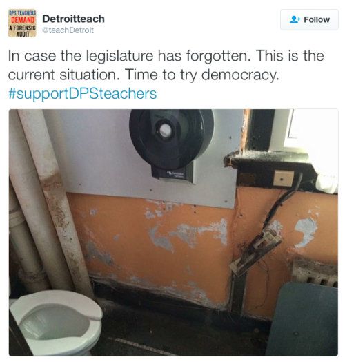 Detroit’s got a major problem on its hands. Most of its teachers are fed up — so fed up, in fact, that they’re staging a district-wide sickout forcing 94 of the city’s 97 public schools to close on Monday. The teachers staged a similar sickout in January over deplorable school conditions, today’s protest is in response to a frightening email about their salaries after June 30,