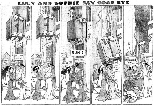 “Lucy and Sophie Say Goodbye” is a newspaper strip from the early 1900s (circa 1905 here) about two women who just can’t bear to part from one another.
