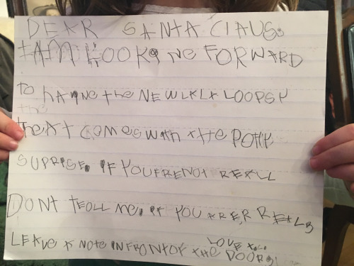I am looking forward to having the new lala loopsy that comes with the potty surprise. If you are not real don’t tell me. If you are real leave a note in front of the door. Love, T.L.