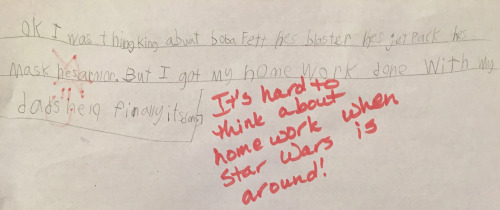 Last night I worked on my homework. It was hard and I thought it tricked me. I was frustrated. My dad was giving me tactical advice. I may or may not have been drifting away thinking about Star Wars.