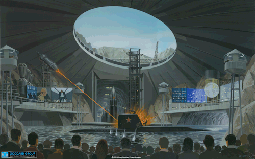 1986 Ralph McQuarrie concept art for a never-built James Bond attraction at Universal Studios Florida. Via The Goddard Group
