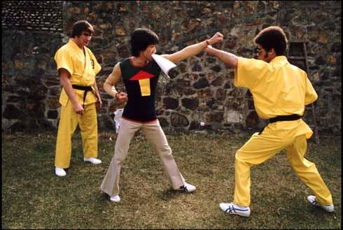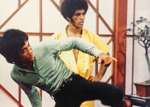 gutsanduppercuts:Bruce Lee and Jim Kelly on the set of “Enter...