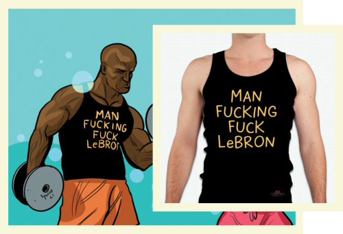 Prize: Man Fucking Fuck LeBron tank. Have your tank top express your disdain while you pump up your bulging biceps.