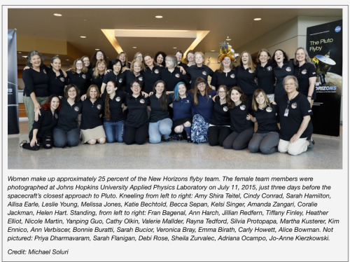 Women scientists made up 25% of the Pluto fly-by New Horizon team. Make sure you share this, because erasing women’s achievements in science and history is a tradition. Happens every day.