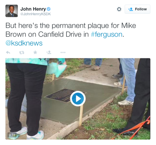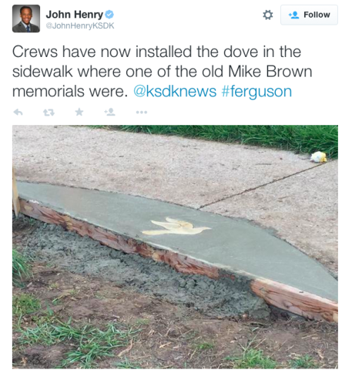 The dove and plaque inserted in the sidewalk will serve as permanent memorials for Mike Brown now.