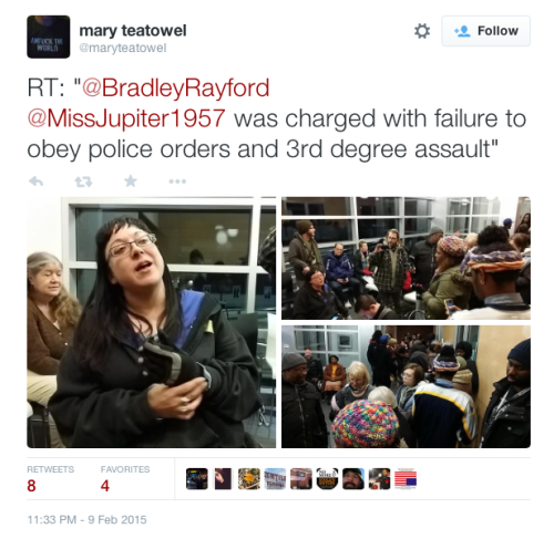 Twitter user and live streamer, MissJupiter1957, was pulled from her wheelchair and assaulted by police, arrested and charged with “failure to obey police orders and 3rd degree assault” on a police officer. Her wheelchair was also confiscated by police.