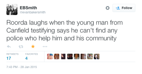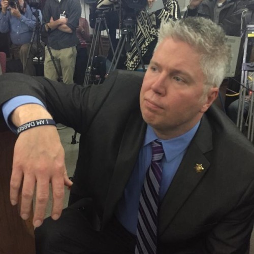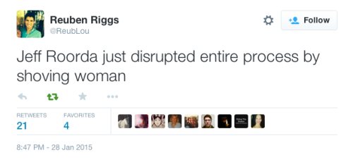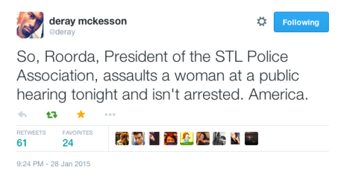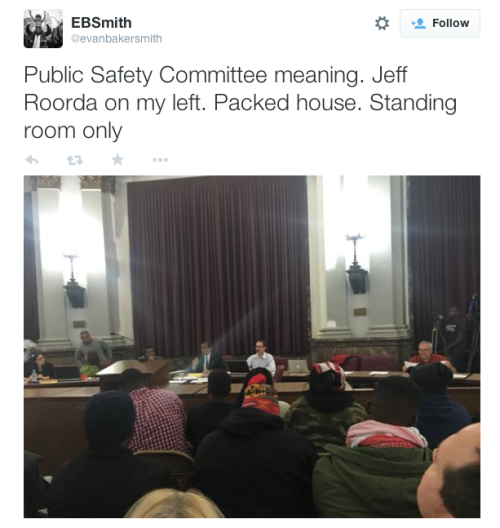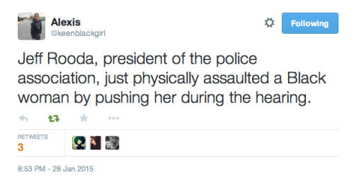 Jeff Roorda, Missouri State Representative and head of the STL Police Officers Association, wears “I Am Darren Wilson” bracelet and shoves woman during the #CivilianOversight/Public Safety Committee meeting.