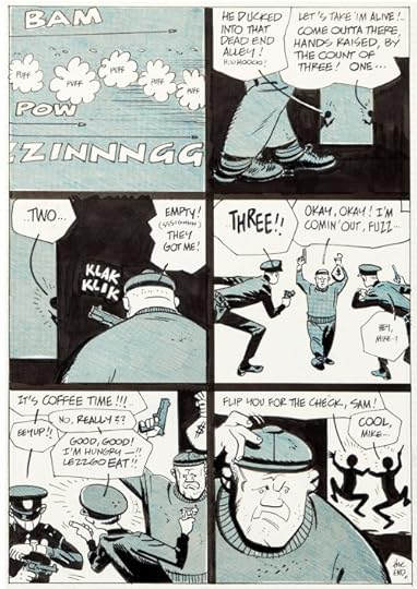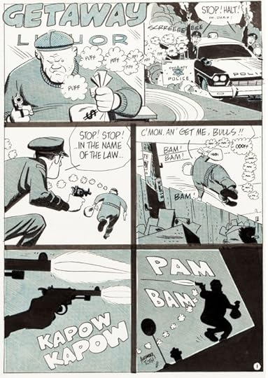 Complete original art for “Getaway,” a two-page gag strip by Alex Toth from Drag Cartoons #12, published by Millar Publishing Company, 1963.