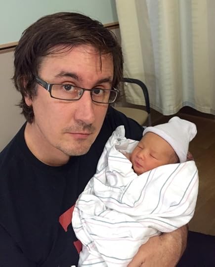 pictured, L-R: John Darnielle, Moses Darnielle (born 4 November 2014)