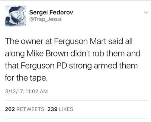 MIKE BROWN WAS INNOCENTNew footage shows that Mike Brown indeed didn’t rob that convenient store afterall. The video shows Mike entering the store at around 1 a.m on August 9th, 2014, to exchange something (possibly marijuana) for cigars. Before he left the store on that night, he went back to the counter to possibly tell the clerk to hold on to the items. Later on that morning, he went back to the store to retrieve the item. That’s it. Let’s also not forget that the store...