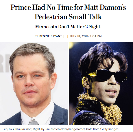 GQ Encyclopedia of Matt Damon, his Bourne co-star Julia Stiles begins to tell the story of their encounter with Prince:
