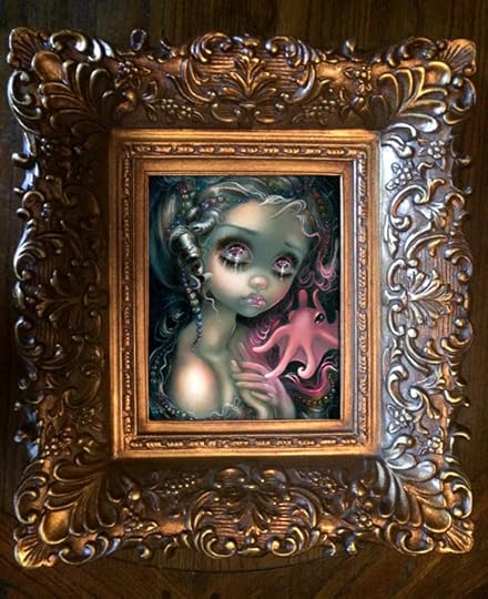 New paintings! I have some three new paintings to show you from my Mermaids show! "Dumbo Octopus Mermaid" - original painting is AVAILABLE details here , "Monet Mermaid" original has sold, but prints are here , and then we have a tiny original painting called "Miniature Study with Anglerfish" available from the Pop Gallery (call them at 407-827-8200 or email them here, they ship worldwide). All of the other seven originals (including Monet Mermaid) were sold at the show, we just have the mini Anglerfish & the Dumbo Octopus mermaid still available (see photos below!), and prints of the two larger ones.