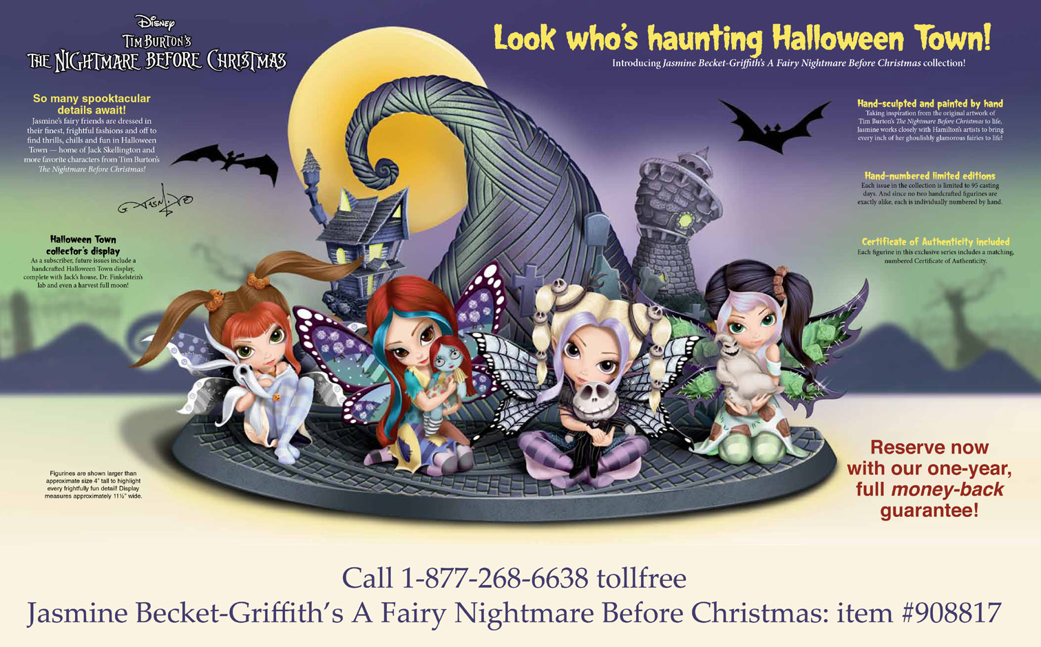 Just call: 1-877-268-6638 tollfree and ask for Jasmine Becket-Griffith’s A Fairy Nightmare Before Christmas: item #908817