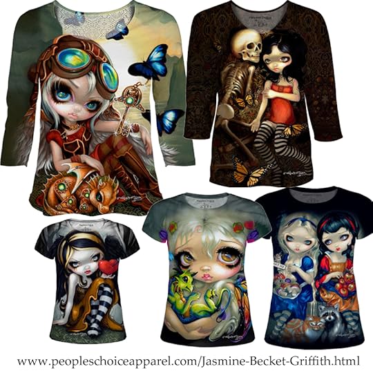 New Jasmine Becket-Griffith shirts from People’s Choice Apparel! These are awesome – “allover print” shirts – you can order them here sizes S up through 3X, in several images and a couple of different styles for women and juniors cuts. I love them! If you have questions about sizes, ordering, shipping, styles, suggestions, etc. PLEASE contact the clothing company (I’m just the lady who does the paintings!) – they can be contacted here on their contact page. More options & images may be available soon – be sure to bookmark the new shirts page here here