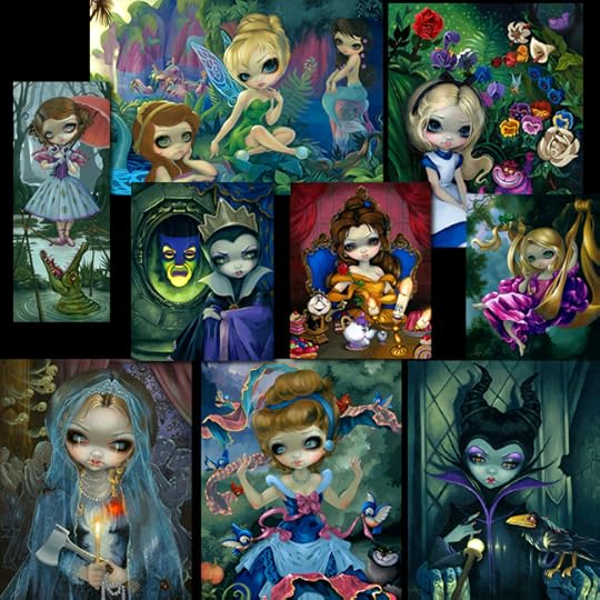 Tell them the name of the painting you are interested in, tell them it is by Jasmine Becket-Griffith, and that it is from WonderGround Gallery. For most Disney paintings of mine there are Limited Edition Canvases (framed, big, around $295-$395), there are matted large prints (around $40 or so), there are 3d plexi magnets (super cool, they vary a bit in price), postcard prints (usually $3-$5), mini framed canvases (so cute, usually around $40) and also there are often other items such as t-shirts, coffee mugs, etc. To see the currently stocked Disney images of mine (to refer to titles, etc.) -
