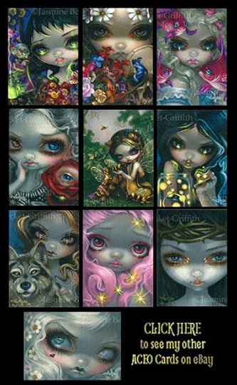 And finally – it’s time for new ACEO cards and I have a grand total of ten brand new beauties up for auction here – some of these will be paintings you have never seen before! I only make one single ACEO card for each painting I do, so they are truly one of a kind. Trading card sized canvas prints, hand embellished by me in acrylic paints, signed & numbered #1 of 1, bidding always starts at a penny here. Please ignore the “Jasmine’s out of town” warning as I will be back home before the auctions end and I can mail them with no delay!