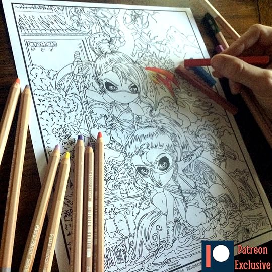 Just for my Patreon patrons, it's our newest membership perk! Those of you in the $5+ tier will now get Patreon Exclusive Coloring Pages of my artwork, just for you guys! These will be completely different pictures not found in any coloring books, we're doing them JUST for Patreon.