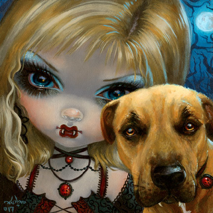 This cutie featuring an American Staffordshire Terrier is the result of one of my custom paintings! She was commissioned by the same client who commissioned the Vampire Chihuahua FOF earlier this year, hehe. The original painting is of course sold, but we have prints and canvases available on my website.