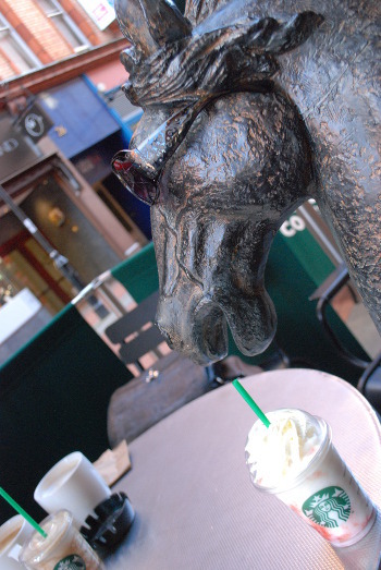 As he was strolling around jewelry stores, looking for gold pleated hooves, he decided to pop into Starbucks.