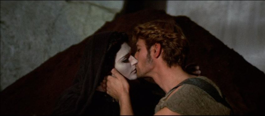 I love the Widow of Ephesus story both because of its clever punch line and its Epicurean philosophy. In the novel, it is told by Eumolpus to soothe tensions after an argument on Lichas’ ship (sections 111-112). In Fellini’s film, it is told by Hermeros, the rich freedman who earlier berated Encolpius…