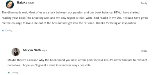 When I commented on Shivya’s blog that I am reading her book and considering to start my own journey, she wrote: