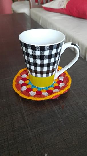 My dearest friend and fellow blogger Anamika AKA The Bespectacled Mother started crocheting couple of years back. Recently, she started shipping her crochet products. I saw the colorful crochet costars on her Facebook wall and couldn’t stop myself from ordering them. They came within a day. My happiness knew no bounds after getting them. I especially appreciate her gesture of gifting me a heart shaped bookmark. I am so grateful to the universe for surrounding me with such beautiful souls.