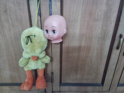 Beanie seems to have a fascination for beheaded dolls, especially if she is the one doing the grisly act! Exhibiting Dexter-like tendencies, this girl is :)