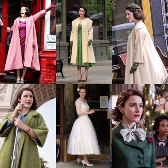 I love Midge’s undaunted spirit and her need to speak her mind, to be heard, and stubborn when confronted with a world that means to keep her inside the box it designated for her. And her clothes tell that story. The colour she wears as she goes about her daily life and the black dresses and pearls she wears on stage when she performs her stream of consciousness comedy act. It is, indeed, marvelous.