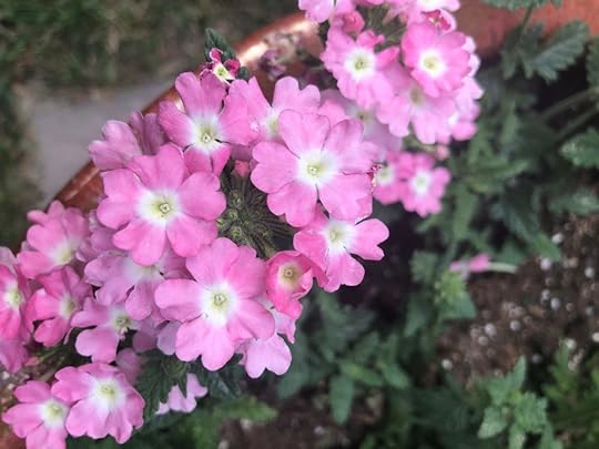 This time of year I’m busy outside planting flowers then settling back, watering and fertilizing, waiting while they grow to fill and spill over the pots.