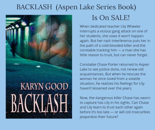 If you haven’t read the first book in my Aspen Lake Series, BACKLASH, now is your chance. It’s is on sale until April 5th for 99 cents. Or whatever 99 cents converts to in your country!