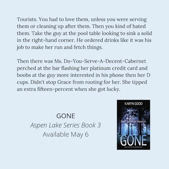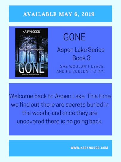 I’m eagerly awaiting the release date of GONE, Aspen Lake Series, Book 3!