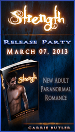 This Thursday, March 7th, is Carrie Butler’s launch of her debutNew Adult paranormal romance, Strength from Sapphire Star Publishing