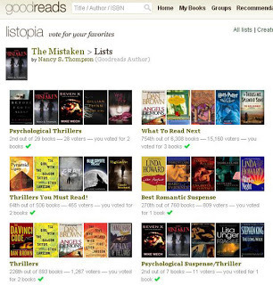On a personal note, I'd like to thank all of you who voted for my book on the various Goodreads lists last week. Because of your help, THE MISTAKEN climbed higher on all 14 lists, especially
