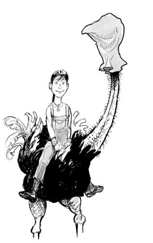 It’s the sixth day of the lead up to the cover reveal of the upcoming middle grade novel Long Road to the Circus (out October 5th) and I’m so very pleased to reveal today’s art. You’ve met Gaucho, the historically belligerent ostrich. You’ve met Suzy, who just wants to get away (figuratively, literally, you name it). Now meet ’em together.