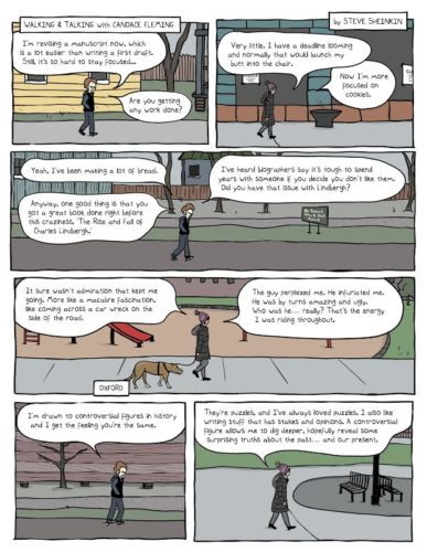 Typically in a Steve Sheinkin Walking and Talking piece you get to see Steve having a conversation with another author or artist en route somewhere. Now we live in a world where were still able to walk, but not with one another. With that in mind, the latest Walking and Talking piece is of two artists together but separate. Candy Fleming joins Steve today from Oxford to discuss her latest (amazing) work of history The Rise and Fall of Charles Lindbergh.