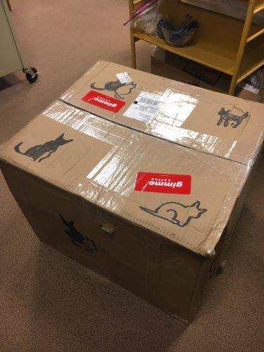 The cats, one should note, are familiar ones. Anyone who has seen the Caldecott Honor winner Big Cat, Little Cat by Elisha Cooper would instantly recognize their winnowy curves. But these cats were different. They decorated a box. A box for my library. A box full of wonderful things.