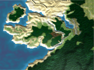 I’ve been working on creating this fantasy world for about a year and a half now. The map on the left is unfinished and still pretty crude — for one thing, there are no towns or locations marked — but it’s the general layout of the kingdom. In the first novel, my heroes, Sael and Koreh, travel from southwest to northeast across a good part of it.