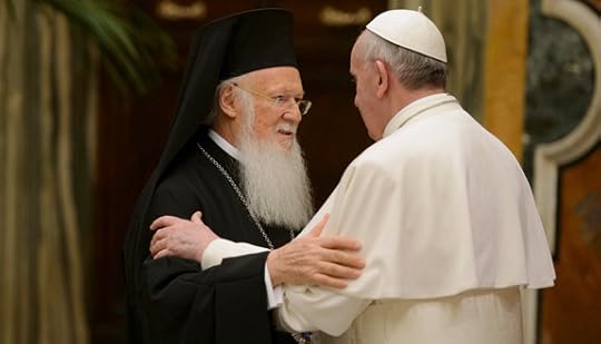 Pope Francis embraces Ecumenical Patriarch Bartholomew of Constantinople at the Vatican in March 2013. (CNS photo/L'Osservatore Romano via Reuters)